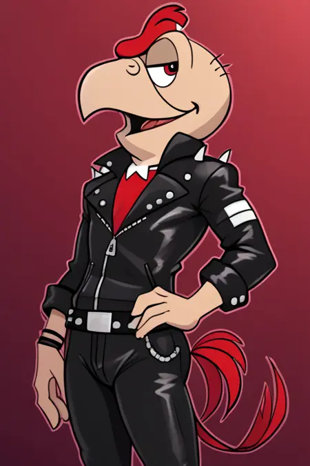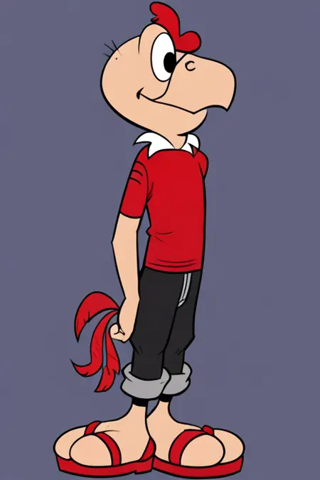 추천 프롬프트: Condorito, 단독, 1소년, 빨간 셔츠, 검은 바지, 샌들