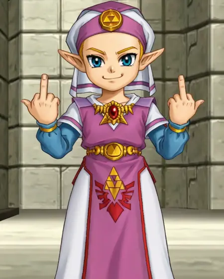 If you dont include source_anime and 2d, she will look like she does in the 3DS version of Ocarina of Time, so do with that as you will.