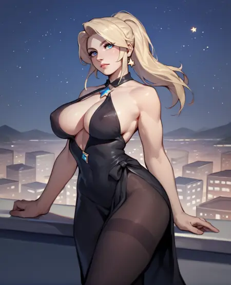검은 드레스 훈련 - 검은 드레스, 가슴선, 보석, 검은 허벅지 높은 양말, --- 검은 드레스 스커트, 또는 스커트, 필요 시 추가 - 의복이 드레스에서 변경되면 드레스를 음성에 포함시키세요