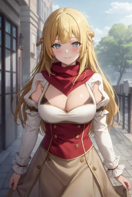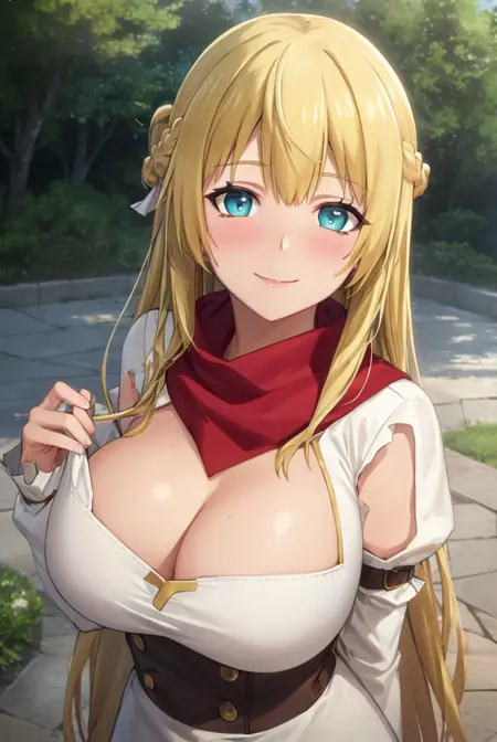 prompts: Rit_BFTHP, red scarf , blonde hair, braid