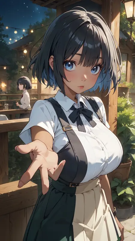 推奨プロンプト: "mio_kofune, an anime girl, 1girl, solo, looking at viewer, short hair, bangs, blue eyes, skirt, shirt, black hair, closed mouth, school uniform, standing, collarbone, full body, white shirt, short sleeves, pleated skirt, shoes, serafuku, socks, dark skin, sailor collar, dark-skinned female, blue skirt, neckerchief, kneehighs, tan, white socks, sneakers, white sailor collar, blue neckerchief, grey footwear"