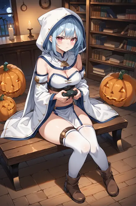 detached sleeves(可拆卸袖子)、wide sleeves(宽袖)、witch hat(女巫帽)或hood(兜帽)、highleg panties(高腿内裤)、thigh strap(大腿绑带)、over-kneehighs(过膝长袜)和brown boots(棕色靴子)。注意大腿!! 它们非常粗壮(AF),因为这就是《天际》风格。请使用