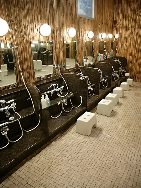 트리거 단어: onsen shower, stool, onsen bucket, shower head, mirror