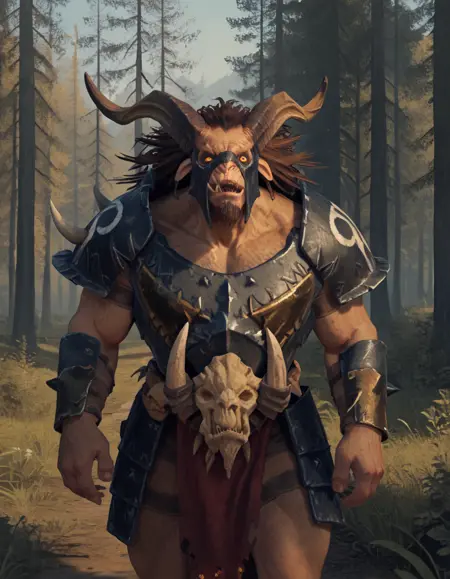 “야수인 보병 중 가장 강력하고 사나운 자들은 베스티고르로 알려져 있다. 그들의 크기와 잔인함 덕분에 전쟁 무리 내에서 특별한 지위를 차지하며, 곤르와 우ง르에게 임의의 과도한 폭력으로 자신의 우월성을 강요한다. 전투에서 베스티고르는 근육과 철로 이루어진 단단한 방어벽을 이루며 공포스러운 속도로 전진한다. 그들은 적군의 정예 병력—자신들의 지배적 지위를 도전하는 존재—를 찾아내고, 거대한 도끼를 처형자의 칼처럼 휘둘러 적을 사지로 찢어버리며, 신을 벗은 발굽으로 부서진 시체를 진흙에 밟아碾는다.”