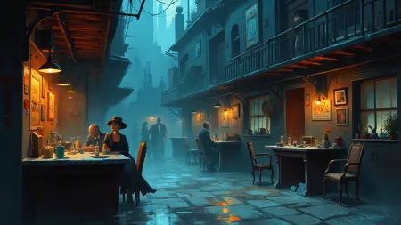 一种深沉、氛围感强的风格,非常适合西方卡通和动漫,也能制作出优美的背景。建议使用强度0.6以获得最佳效果。