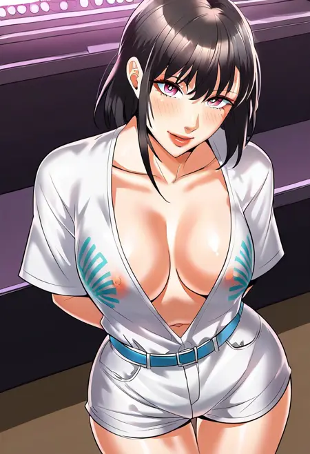 (( lora:se-young:1 , se-young, 美丽的紫色眼睛,清澈的眼睛,明亮的瞳孔,美丽的眼睛,美丽的深棕色头发,美丽的中等波波头发型,齐刘海,巨大而蓬松的乳房,纤细的腰身,宽大的臀部,美丽的肌肤,自然美,超美女性,有吸引力的女性,超级性感女性,欲望的身体,具有诱惑性暴露身材的性感女性,性感的身材,丰满的身材,性感的美,))