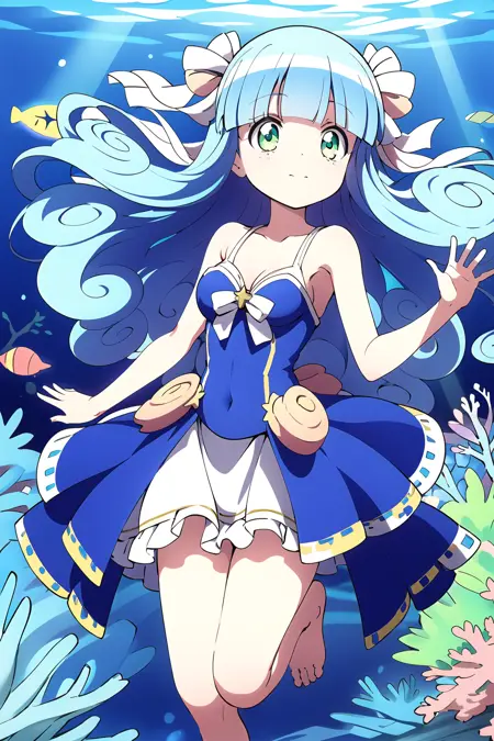 (デフォルトでは普段着のドレスを着ているはず。その他の選択肢には:光輪、天使の羽根、水着、アイドル衣装、ピンクのドレスなどがあります。)
