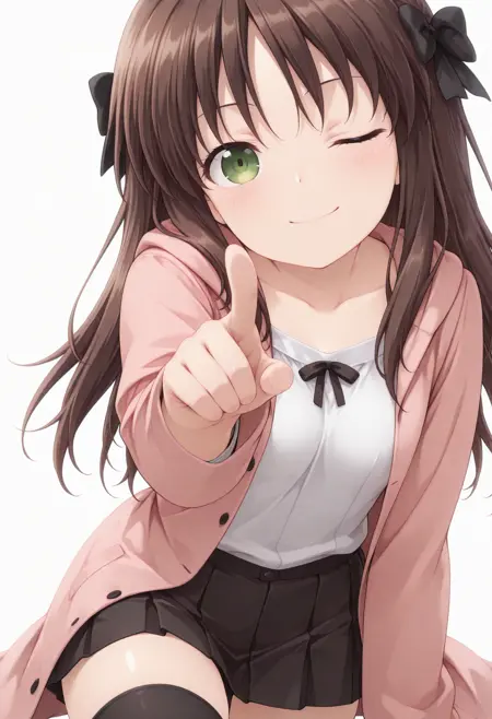 タグ: arima miyako,茶髪,長い髪,あほ毛,黒い髪リボン,緑の目,