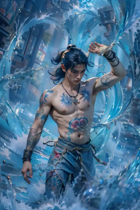 Water bending Avatar, let your character learn to bend water, happy to join the friar's battle. Trigger word: yushui, 1girl, water example figure large model: Chocoale Blues