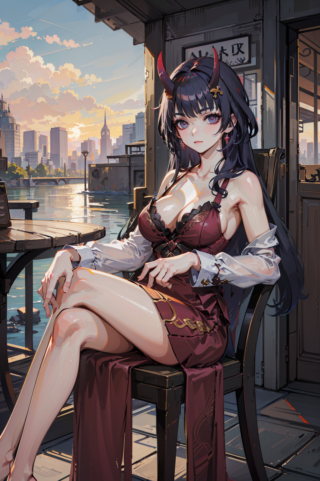 Introduction as always. "yae" is the trigger word, add "very long hair, purple horns, hairpin, hair bun, earrings, purple bodystocking, detached sleeves, purple gloves, pelvic curtain, white tassel, high heels, see-through, breast curtains" to get better output. The recommended weight is 0.8. To change clothes, you need to reduce the weight to 0.6, and keep the prompts and trigger words related to the head. Known problems are: the model does not recognize the number of horns well, and there may be multiple horns. The fringe charm at the waist is indeterminate. The bun may appear on the side of the head instead of directly at the back, consider removing the "hair bun" option to not generate this annoying bun. If your Yae looks less mature, add "mature female, large breasts". The training material has a pure black background, and background descriptors need to be added appropriately when using it. Add "glasses" to get her another skin's glasses.