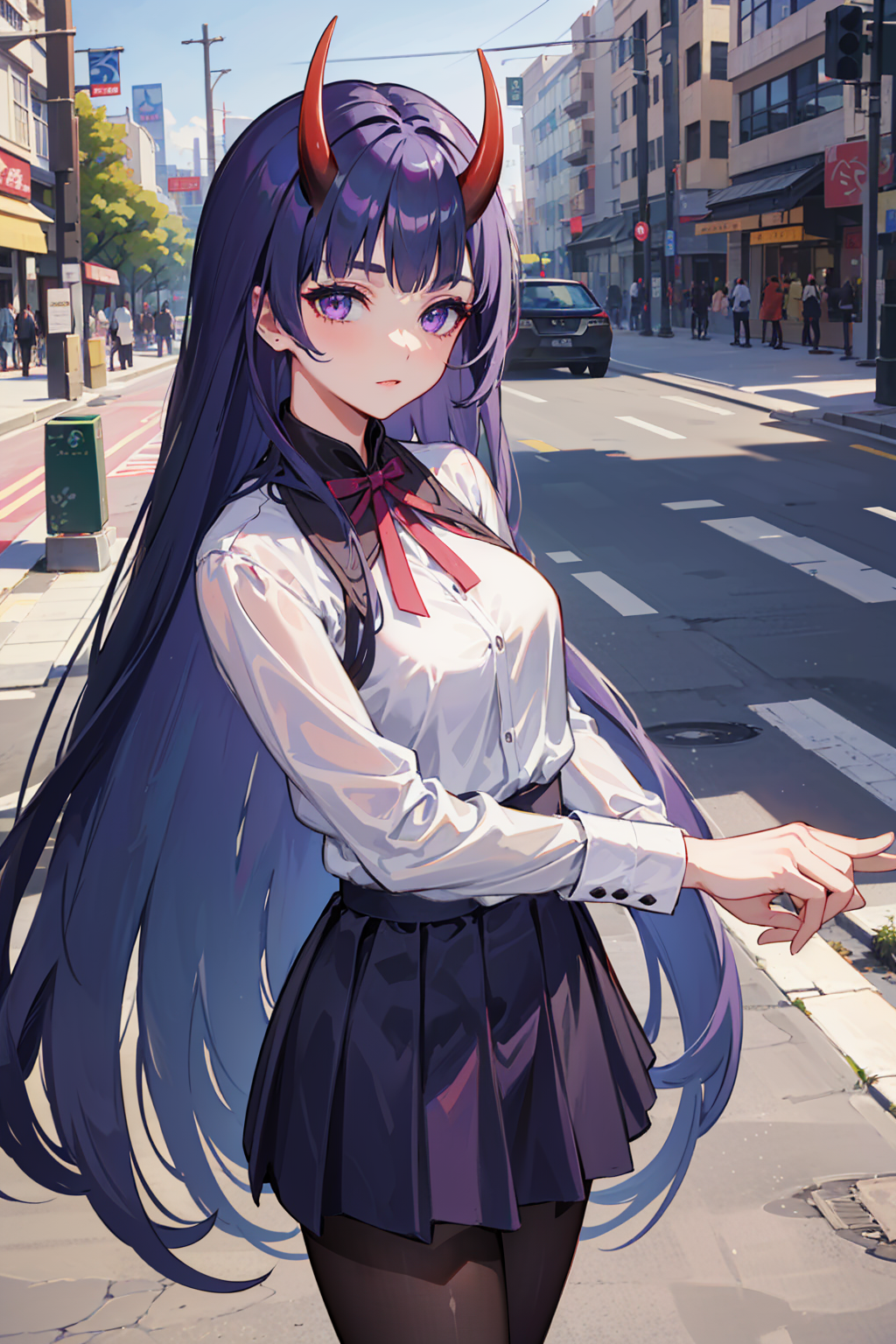 Introduction as always. "yae" is the trigger word, add "very long hair, purple horns, hairpin, hair bun, earrings, purple bodystocking, detached sleeves, purple gloves, pelvic curtain, white tassel, high heels, see-through, breast curtains" to get better output. The recommended weight is 0.8. To change clothes, you need to reduce the weight to 0.6, and keep the prompts and trigger words related to the head. Known problems are: the model does not recognize the number of horns well, and there may be multiple horns. The fringe charm at the waist is indeterminate. The bun may appear on the side of the head instead of directly at the back, consider removing the "hair bun" option to not generate this annoying bun. If your Yae looks less mature, add "mature female, large breasts". The training material has a pure black background, and background descriptors need to be added appropriately when using it. Add "glasses" to get her another skin's glasses.