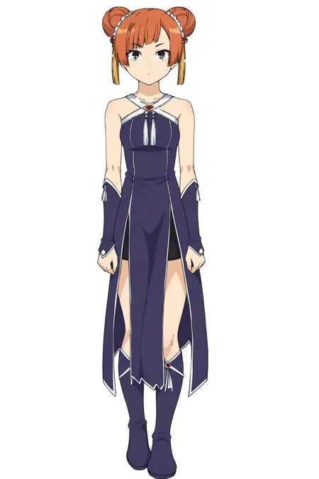 l4uf3n, orange hair, short hair, double bun, hair ornament, tassel, brown eyes