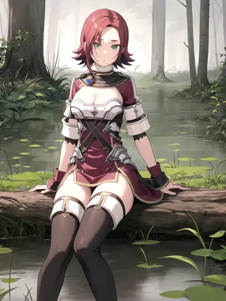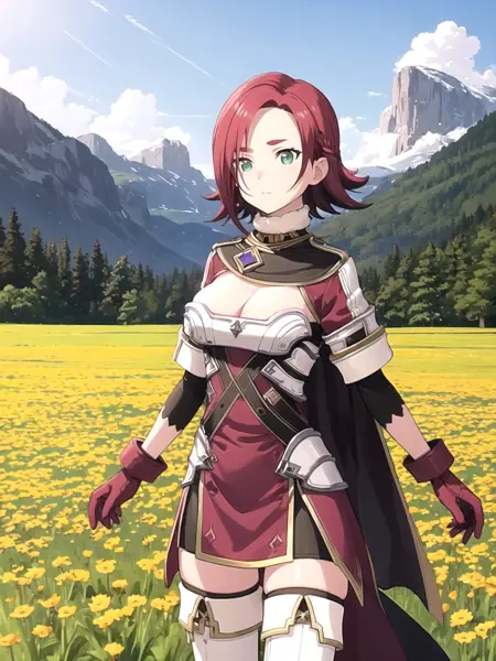 dsmedina, 红发, 短发, 绿色眼睛, 中等胸部, 斗篷, 乳沟, 手套, 长靴