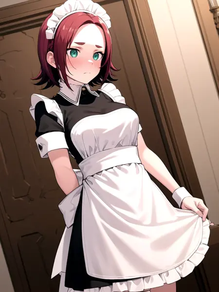 dsmedina, 红发, 短发, 绿色眼睛, 中等胸部, 斗篷, 乳沟, 手套, 长靴