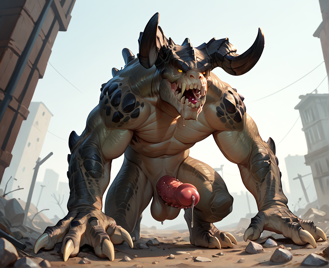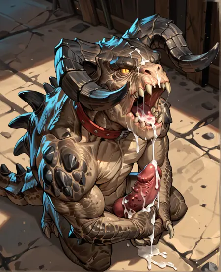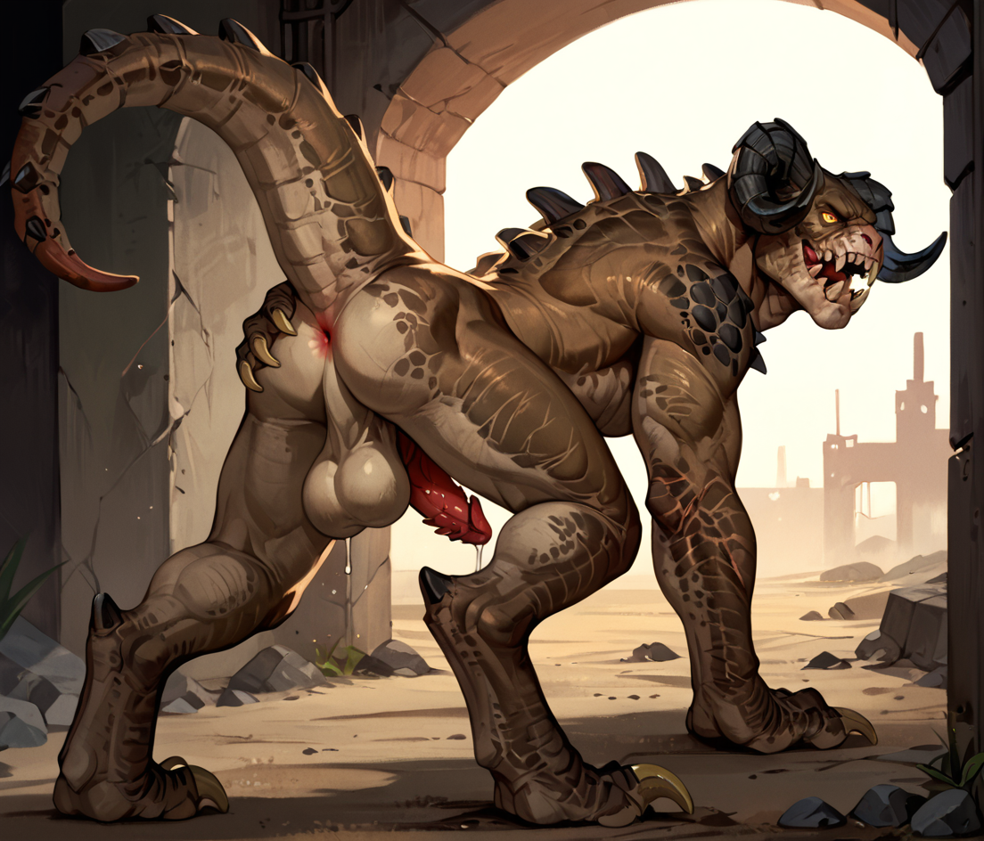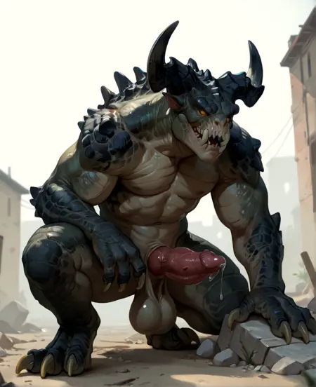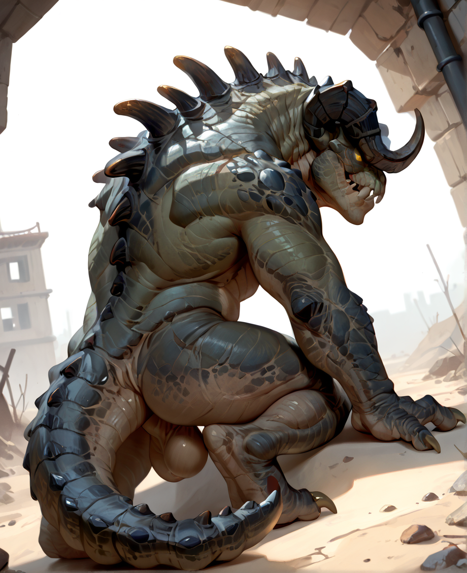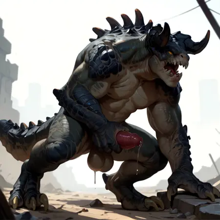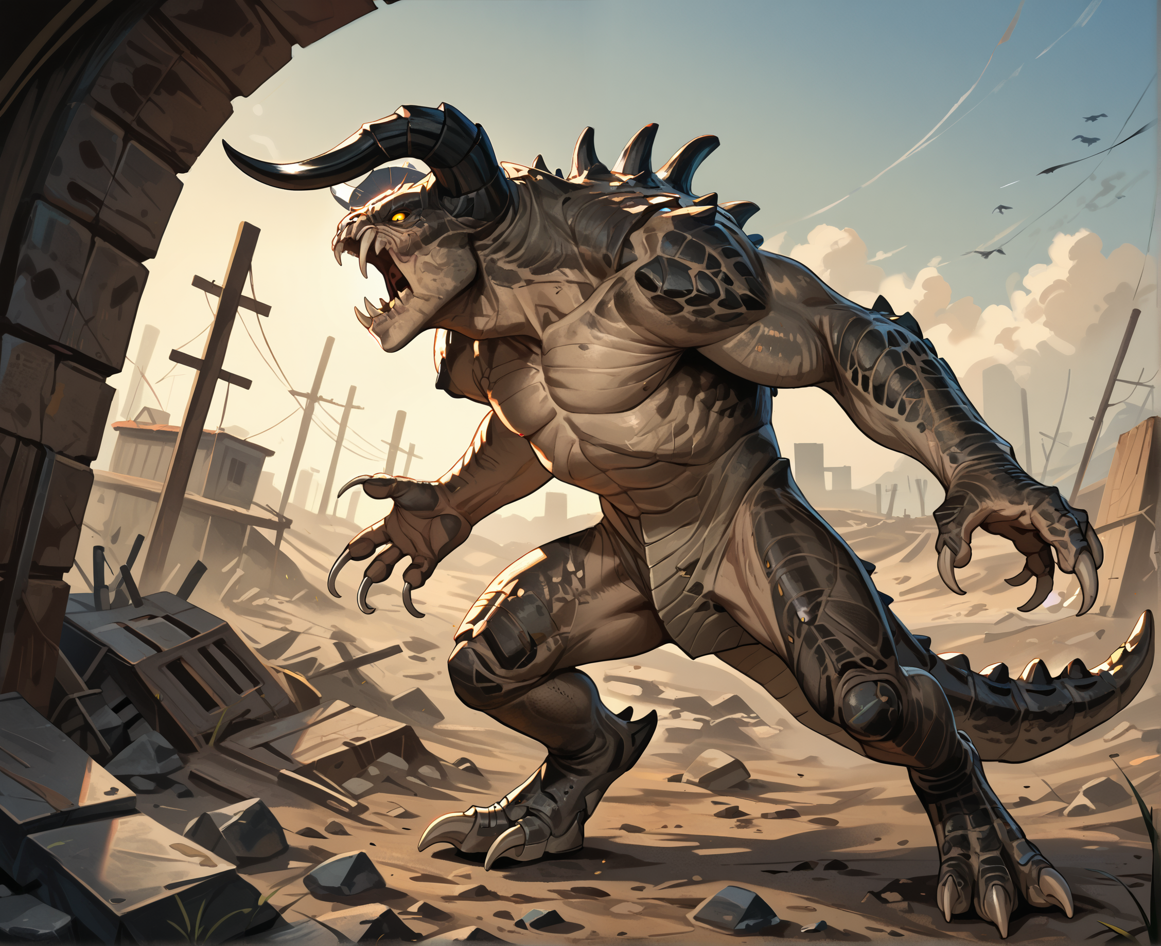 태그: d3athclaw, 몬스터, 생물, 비늘, 질감 있는 피부, 뿔, 날카로운 이빨, 발톱, 세 발가락, 꼬리, 가시, 등 가시, 노란 눈, Digitigrade, 허리가 둥근, 근육质, 등...