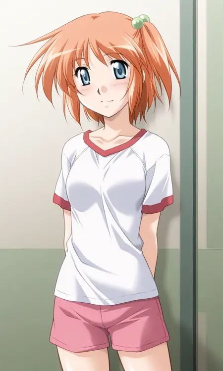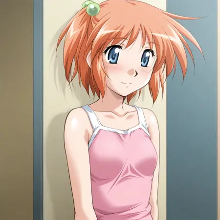 Ruruka Sagara, blue eyes, short hair, orange hair, green hair bobbles, one side up,