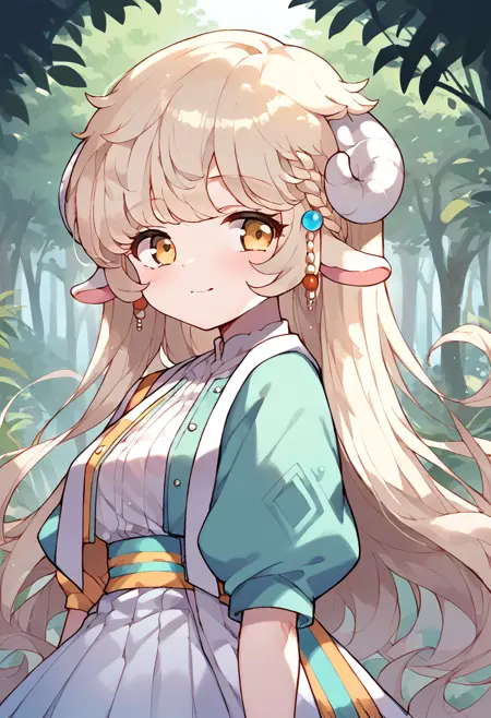 lara,金髪,長い髪,白い角,黄色い目,羊の耳,