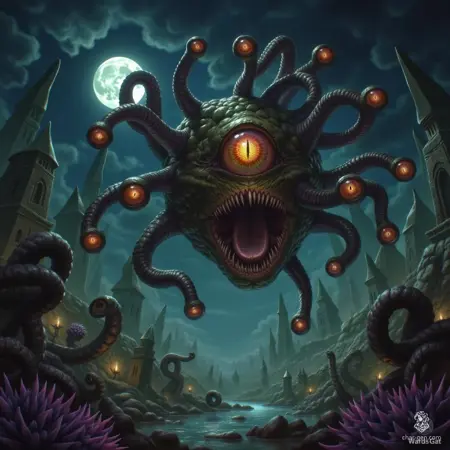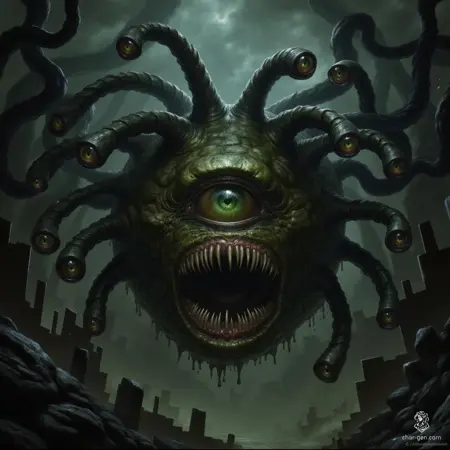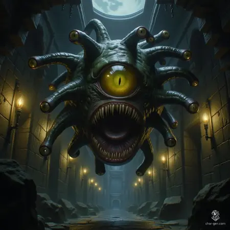 RPG 몬스터 생성: 던전 앤 드래곤(D&D) 캠페인 또는 기타 판타지 설정에서 세부적인 비홀더를 생성하는 데 완벽합니다.