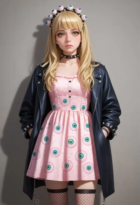 "Gurokawa" is a japanese street fashion which is often confused with "Yami Kawaii", but Gurokawa has more of a horror theme to it. The name would literally translate to "grotesque cute".