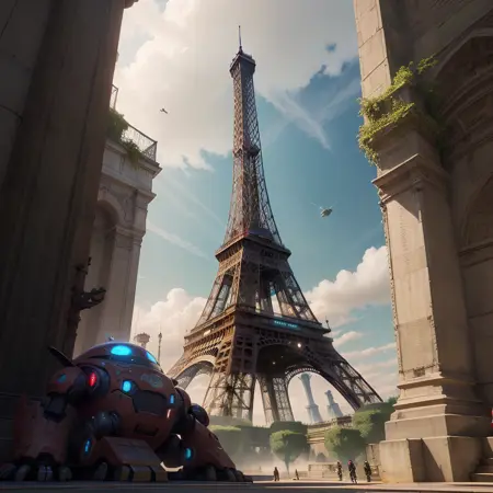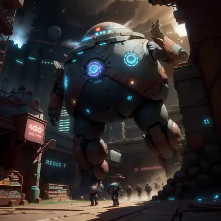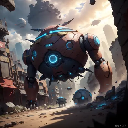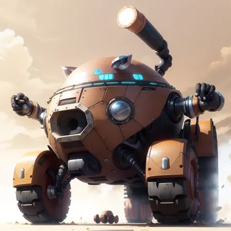 这个LoRA本质上是一个艾格曼机器人建造机器,能将元素(主要是机械类)融合进现代艾格曼风格的美学中,或生成被殖民征服的世界的图像;p