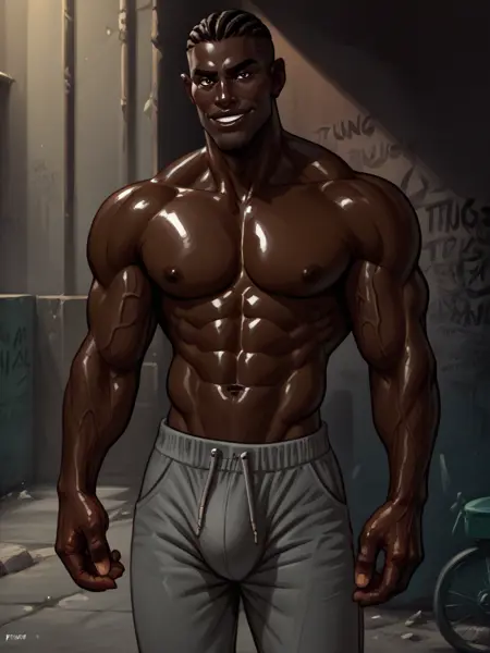 提示:BBC_TP, BBC, 深色皮肤, 深色皮肤男性, 金链子, 灰色运动裤