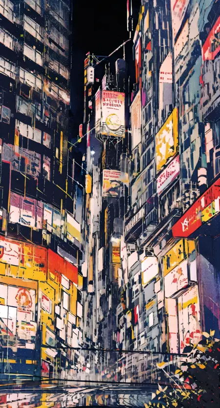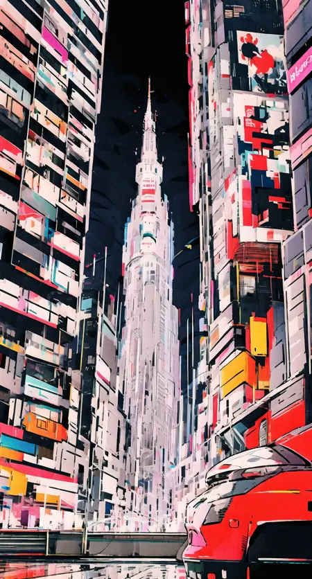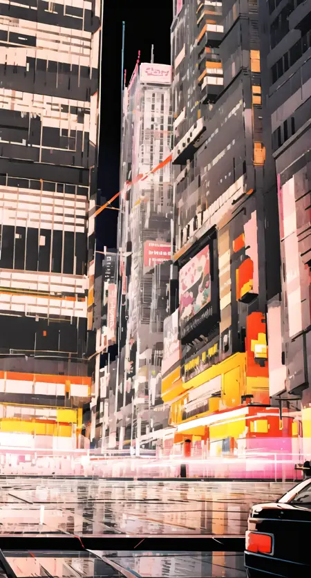 该模型可生成由色块构成的更细致的霓虹城市背景。
