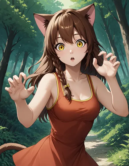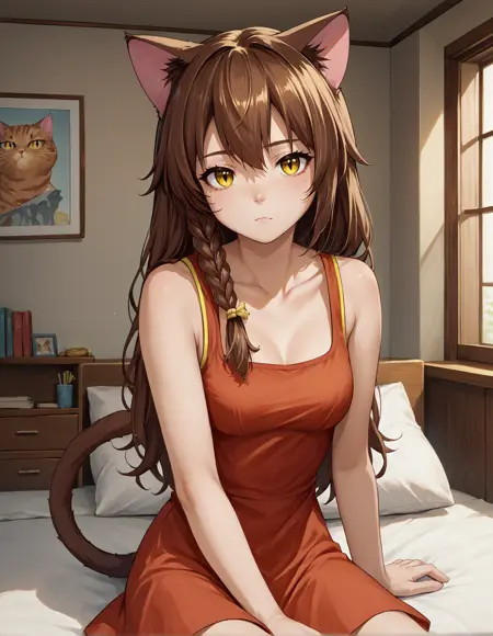 캐주얼 복장: blyulia, 고양이 귀, 빨간 민소매 드레스, 고양이 꼬리