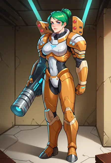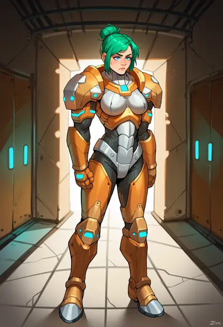 The female power armor GDI troopers from C&C 3 Kanes Wrath. Prompt is "ZRa1der" along with "power armor" and the like.