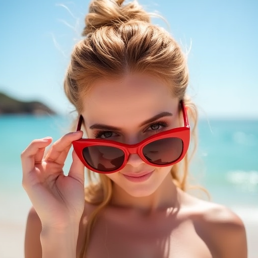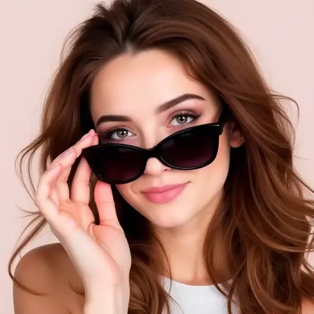 Woman looking over glasses/sunglasses, sexy expression for FLUX