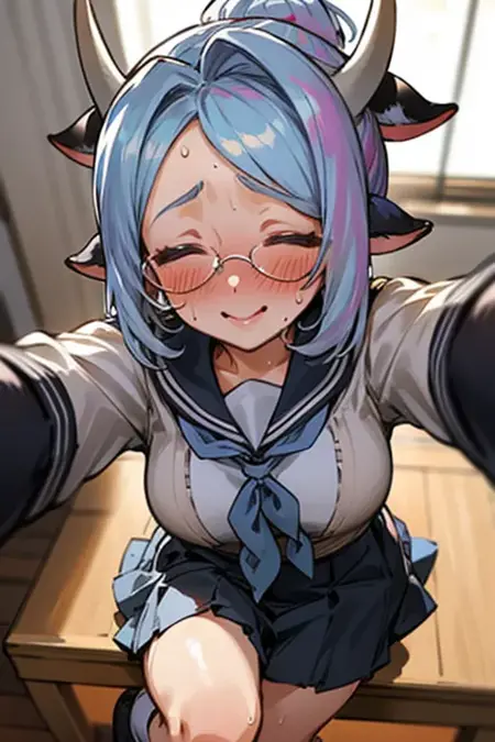 耳と角、牛のリボン(?)の描画が非常に不安定。