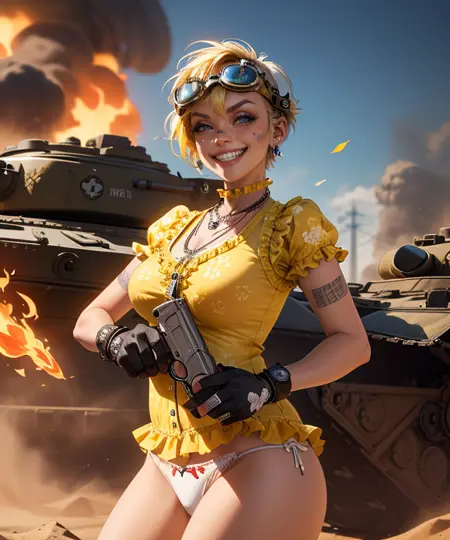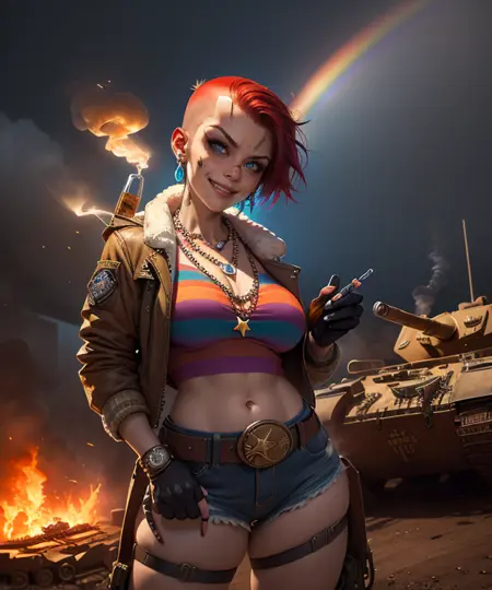 이 LoRA는 모든 사람의 사랑을 받는 포스트-아포칼립스적이고 혼란을 즐기는 여왕, **탱크 걸!**의 외모를 재현하기 위해 제작되었습니다.
