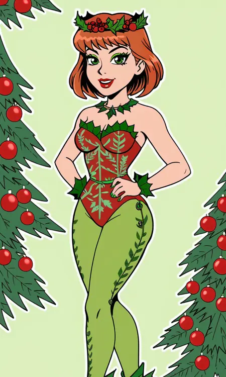 1girl,medium hair,bob cut,orange hair,leaves wreath,makeup,green eyes,leafy leotard,green leotard,leaf choker,green choker,leaf wristband,green pantyhose,leaf print pantyhose