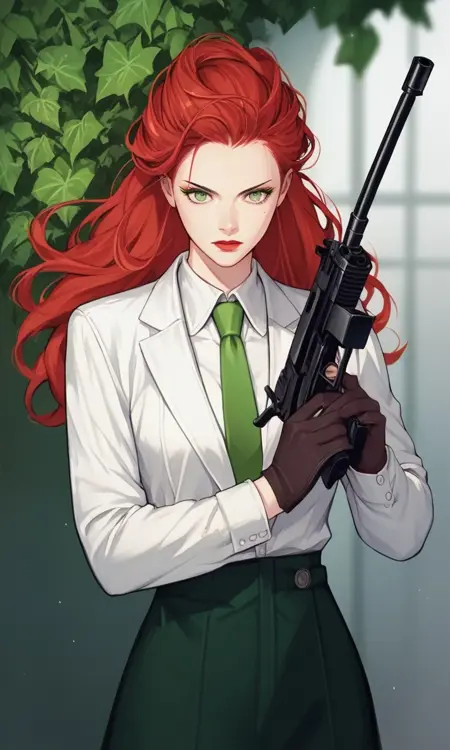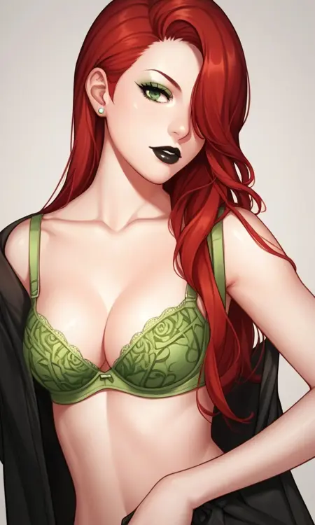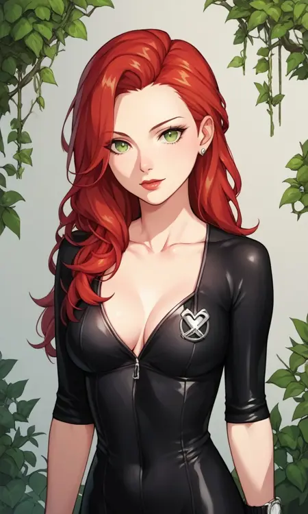poison ivy(dc),long hair,1woman,green eyes,red hair