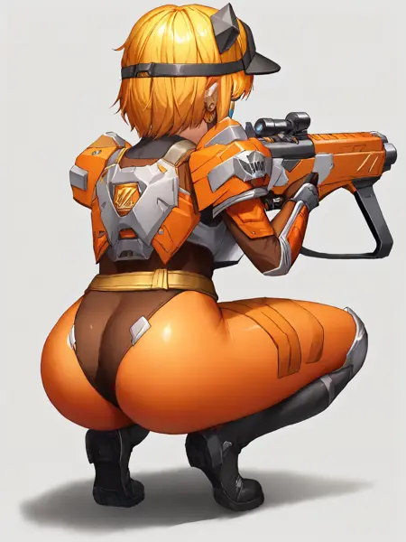 Add if doing "full body" or "feet out of frame" (training data set had "boots" as prompt, but from my own testing, "knee boots" seem to get you a more accurate depiction of her boots including her silver knee guards):
