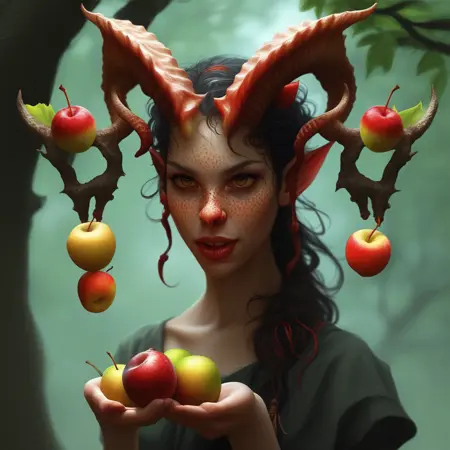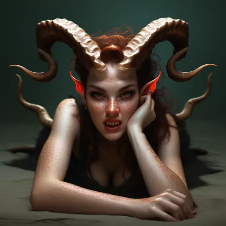 うまくいったら教えてください。そうでなければ、単に「female freckled Tiefling demon horns」と書いてください。
