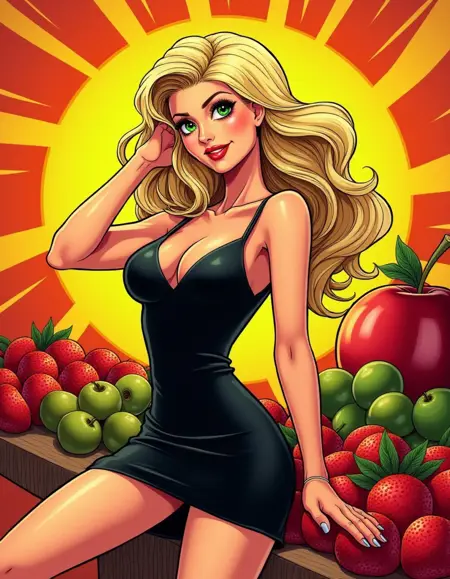 1woman,long hair,blonde hair,((tanned skin)),green eyes,black dress,short dress