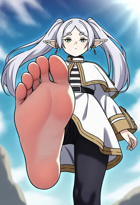 主要提示词:footstomp, barefoot, feet, foot focus, soles, toes, foreshortening, view from below