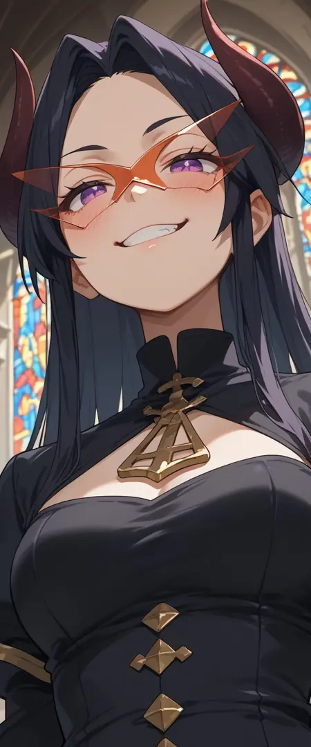 メガネの色を設定するには、「赤みがかった眼鏡」、「青みがかった眼鏡」などと記述してください。