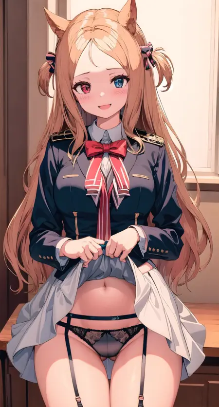 OG:赤いマント、ブーツ、エポレット、黒いコルセット、黒いグローブ、黒いスカート;