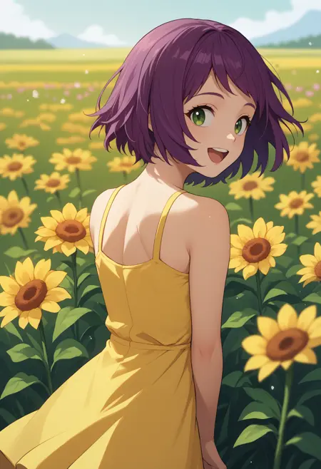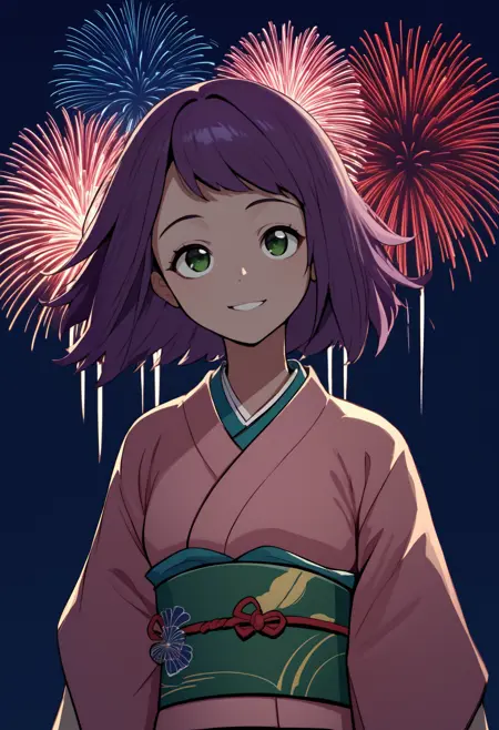 トリガー+外見: s0niastrumm, 短い髪, 紫の髪, 緑の目