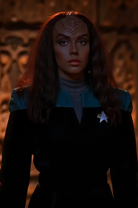 下一个《星际迷航》种族LORA,用于Flux的克林贡人。训练时未包含服装,因此你无法生成标志性的盔甲克林贡人,我可能某天会将其作为独立的LORA添加。