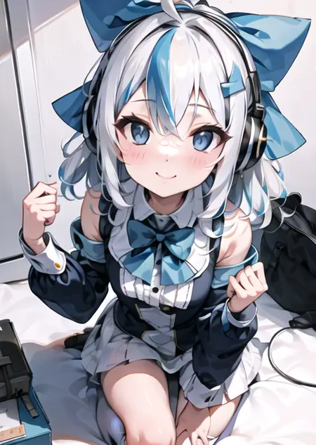 (wavy hair:1.2),(headphone and big bow behind head:1.2),の使用を推奨します。