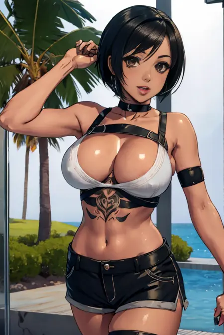 使用 "sternum tattoo" 或 "tattoo on stomach",权重建议设置在 0.5-0.8 之间。权重过高容易导致身体特征过度扭曲。