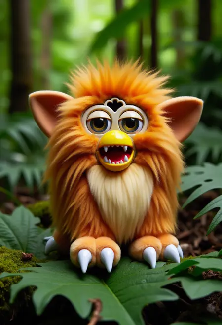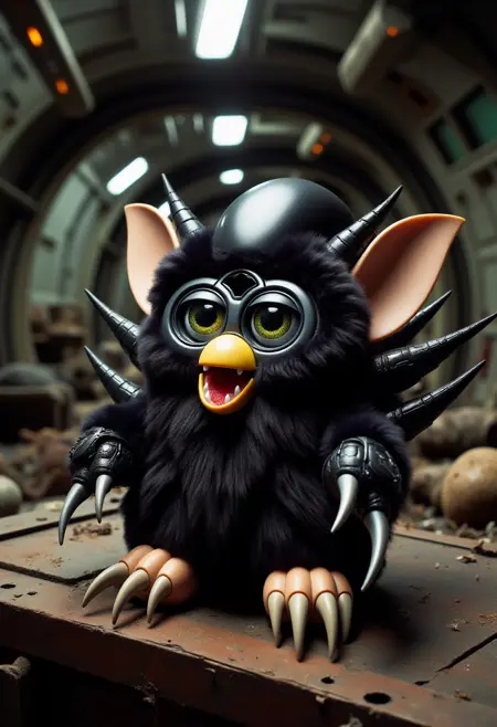 你想要万圣节主题的身体恐怖风格,那就来了——FLUX 模型的 Furby!