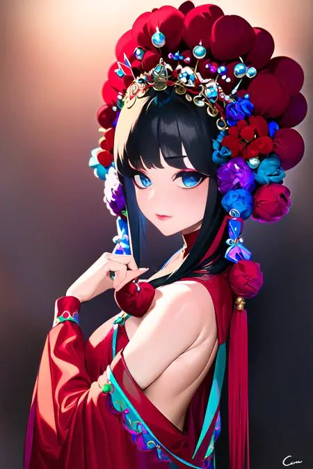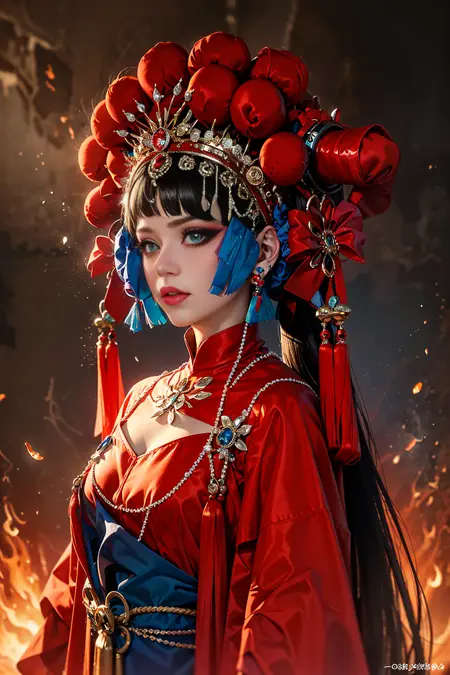 Chinese Opera Style LoRA,可生成中国戏曲服饰,包括头饰、服装、背部旗帜。