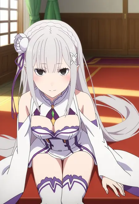 shigiridef, long hair, blonde hair, black eyes, empty eyes, sidelocks, large breasts, bare shoulders, yellow bodysuit, belt, sleeveless,