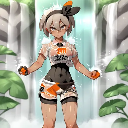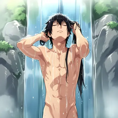 オプション:滝、濡れた肌、濡れた髪、屋外