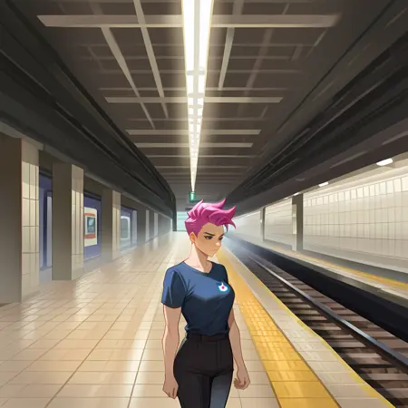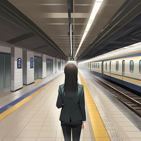 オプション:駅、列車、屋内、タイル、タイル床、天井照明