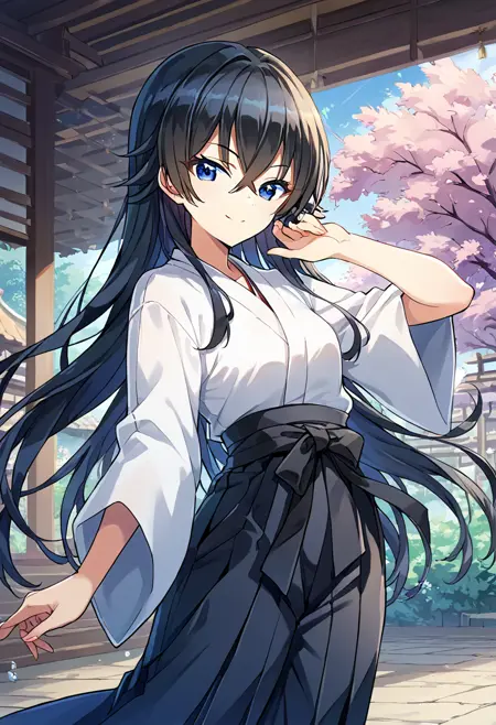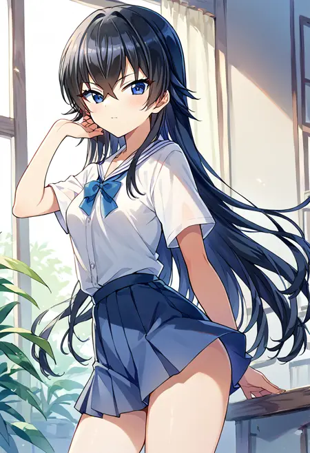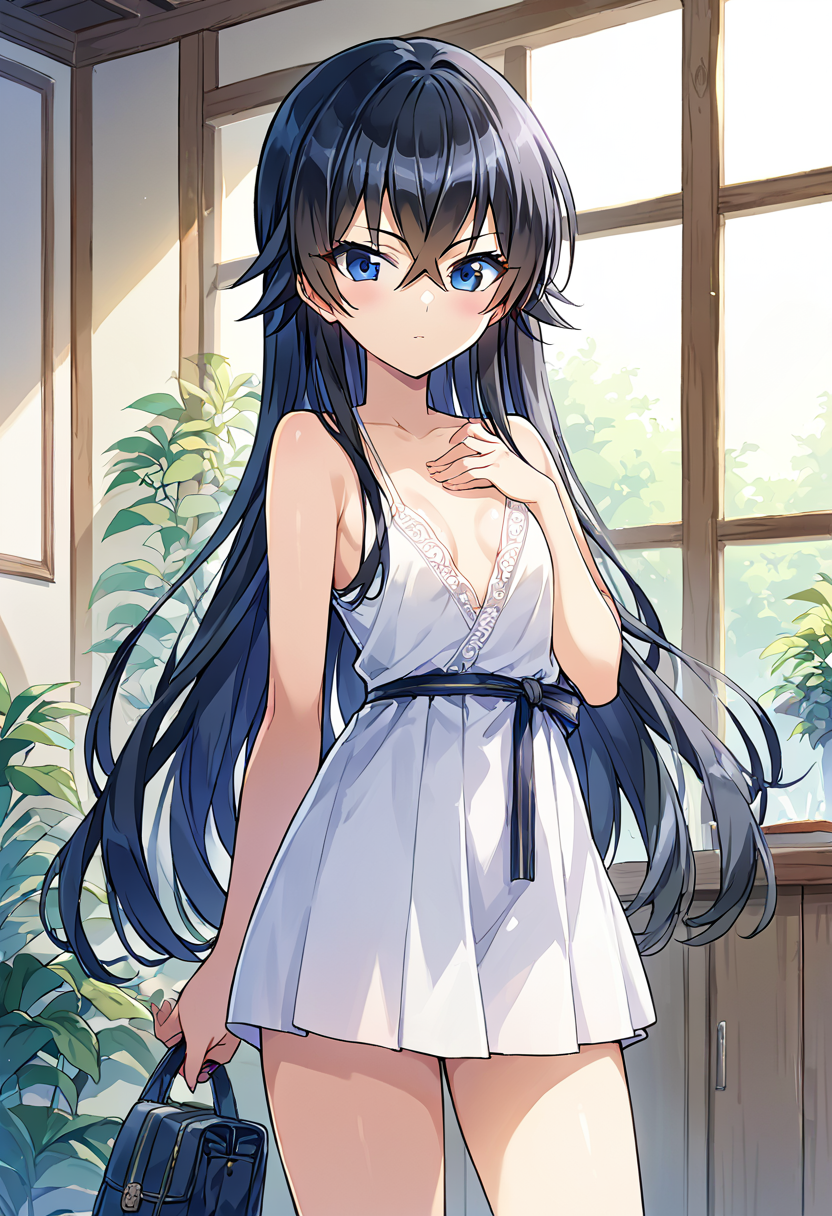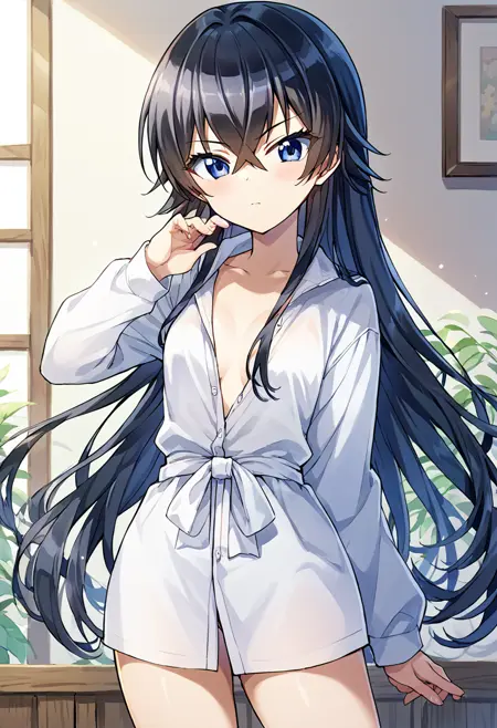 오츠키 하가네, 파란 눈, 검은 머리카락, 눈 사이의 머리카락, 매우 긴 머리카락, 작은 가슴,