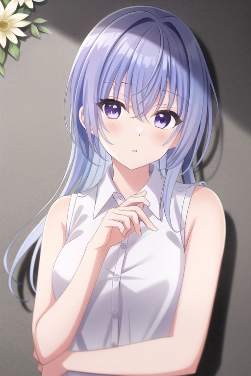 Trigger Words: suzuki hana, long hair, blue hair, purple eyes